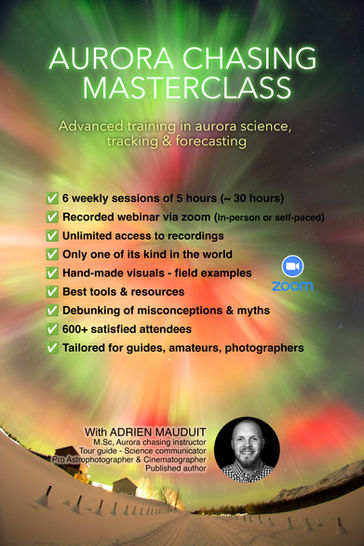 So, if you want to know everything about how the Northern Lights are created, what to look for if you're chasing them and how to predict them better, Adrien's courses are the best option you can find, worldwide.